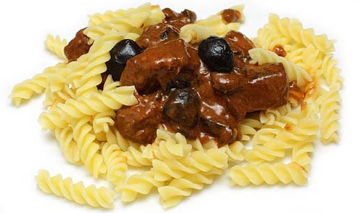 Zutaten 1kg Gulasch - halb/halb 1kg Zwiebeln Salz, Pfeffer, Paprika 1kg frische Champignons 100 g schwarze Oliven Brühe 1 Becher Sahne 1 P. Chesterkäse (Scheibletten) Zubereitung Gulasch scharf anbraten und würzen. Zwiebeln würfeln, Pilze säubern, vierteln, beides zum Fleisch geben, schwarze Oliven zufüge und etwas mit schmoren lassen. Mit Brühe auffüllen ( Menge nach Sossenbedarf). Köcheln lassen bis das Fleisch gar ist. Bei einer grossen Sossenmenge Flüssigkeit mit etwas Sossenbinder andicken. Sahne und Käse ( Scheiben etwas zerpflücken) zufügen. Wenn der Käse geschmolzen ist , ist das Gulasch fertig zum geniessen. Spätzle oder Klösse dazu reichen. siehe auch: Kartoffel Gulasch Hirschgulasch Gulasch |
